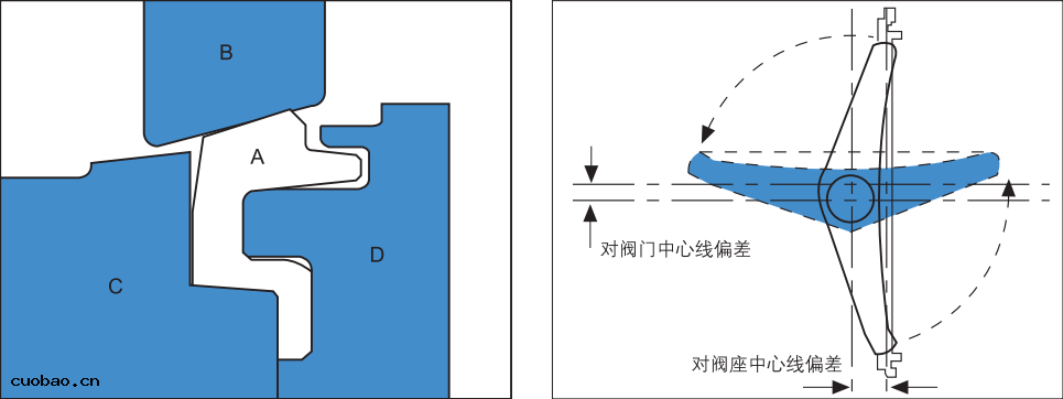 在開啓和處於(yú)中間(jiān)位置時閥座與蝶板不發生接(jiē)觸